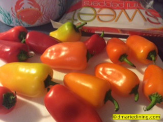 1 bag of mixed mini sweet peppers sliced in half