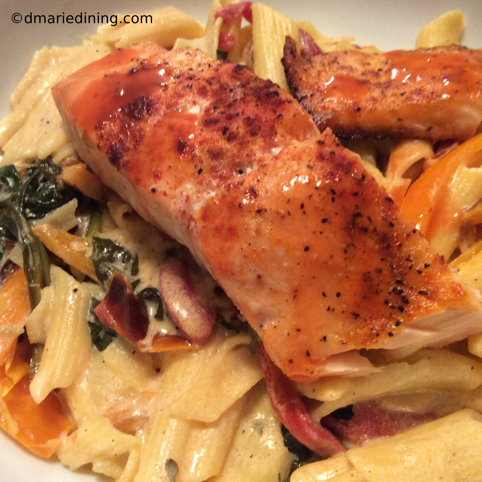 On days I want to be really healthy and stay away from red meat or pork “the other white meat”, I turn to my one true favorite – salmon. Since my hubby and son love pasta so much I knew if I added salmon to a pasta dish they would love it.