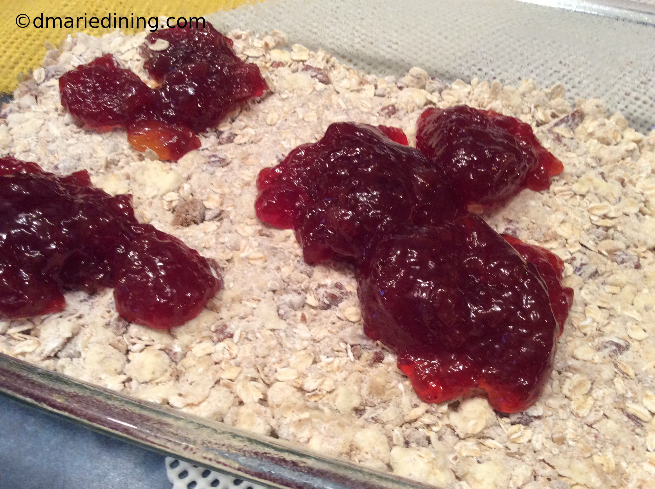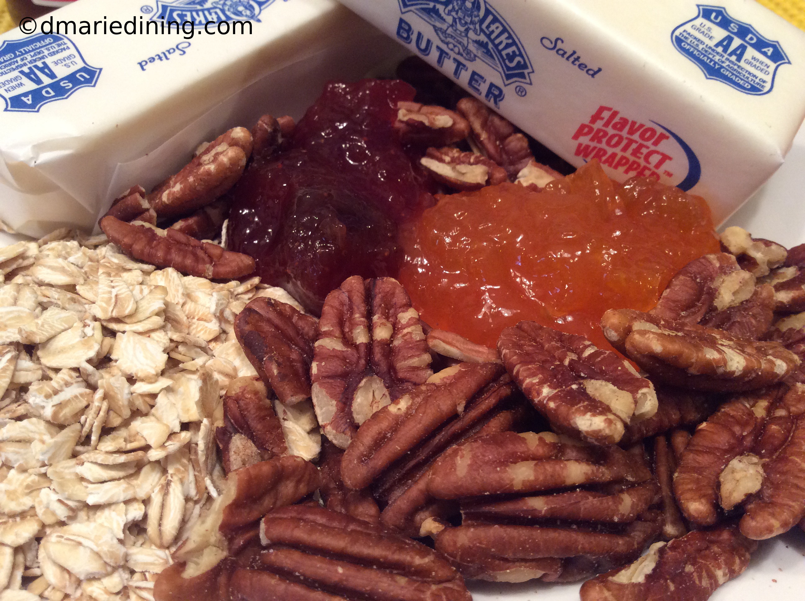 Double Decker Oatmeal Bars popped into my mind while watching the Pioneer Women one morning. She made a very simple strawberry oatmeal bar dessert that I figured even I could make. I decided I wanted to try making two layers of oatmeal bars so I could experiment with using complimentary flavors. I liked the idea of apricots and raspberries or orange and blueberry preserves.