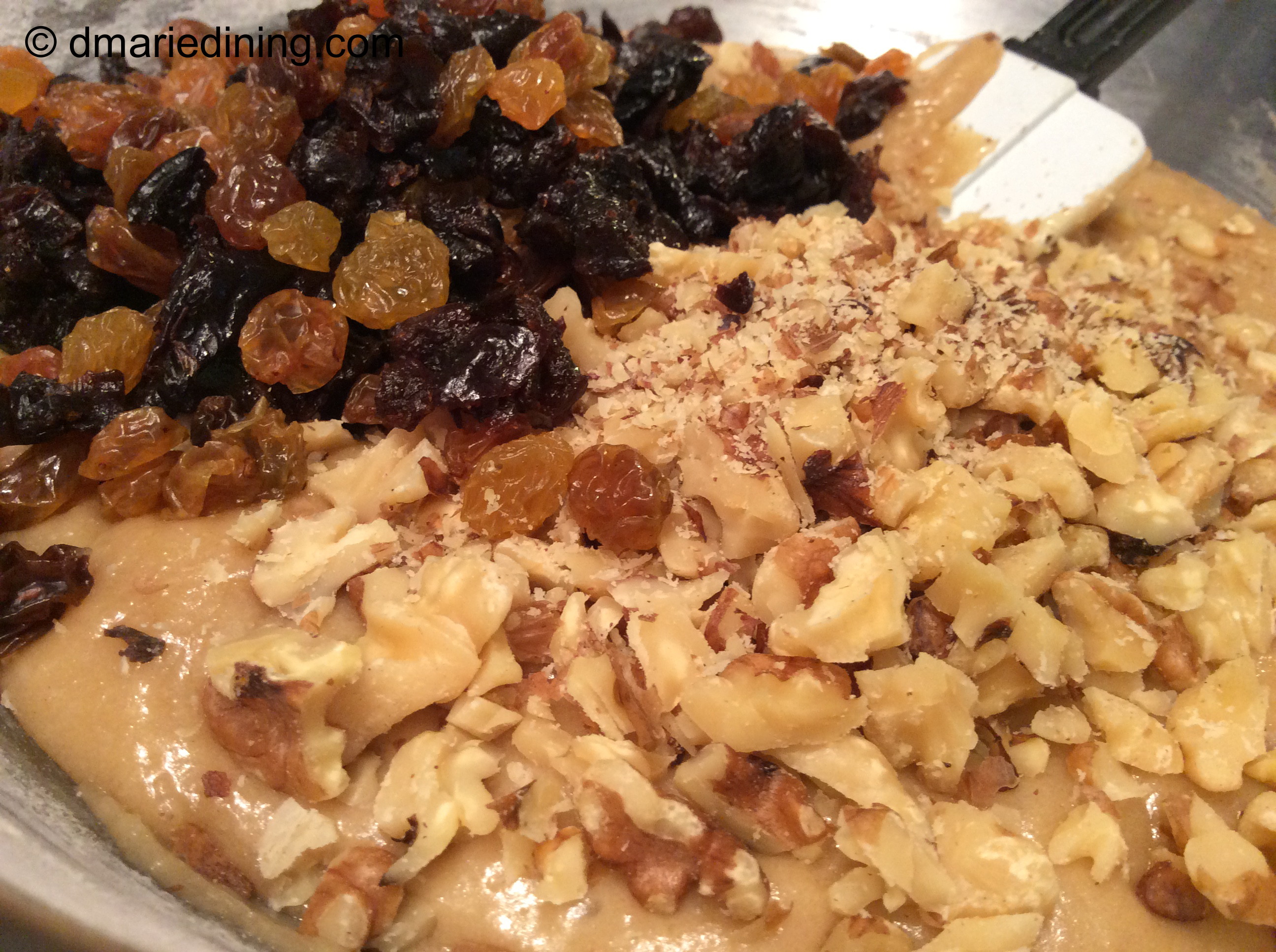 I usually use pecans in my dessert recipes but I decided I wanted to use some thing different so I chose walnuts. Walnuts of course go great in any cookie. To compliment the nuts I used dried chopped plums instead of cranberries just because they looked interesting and they were on sale.
