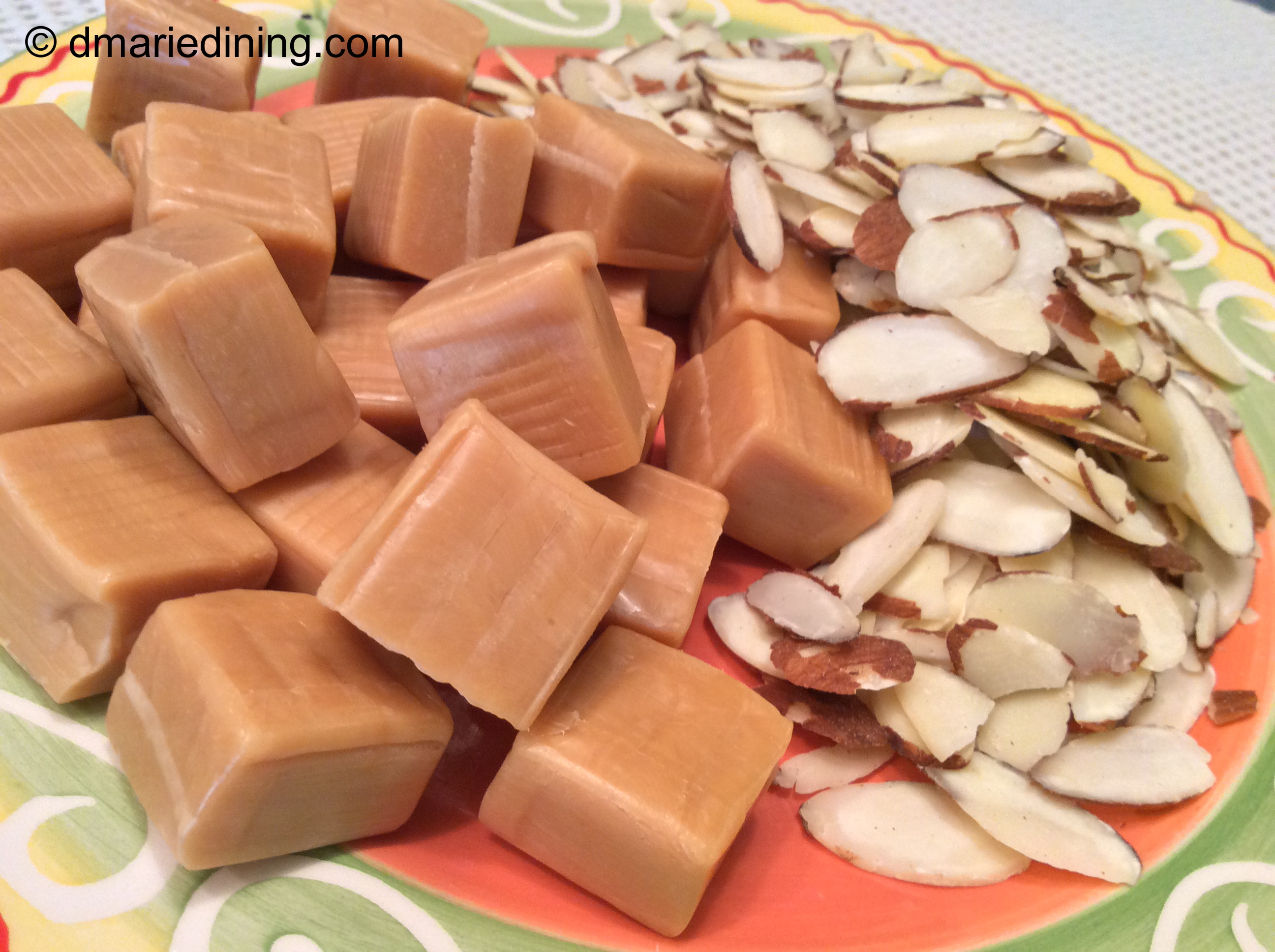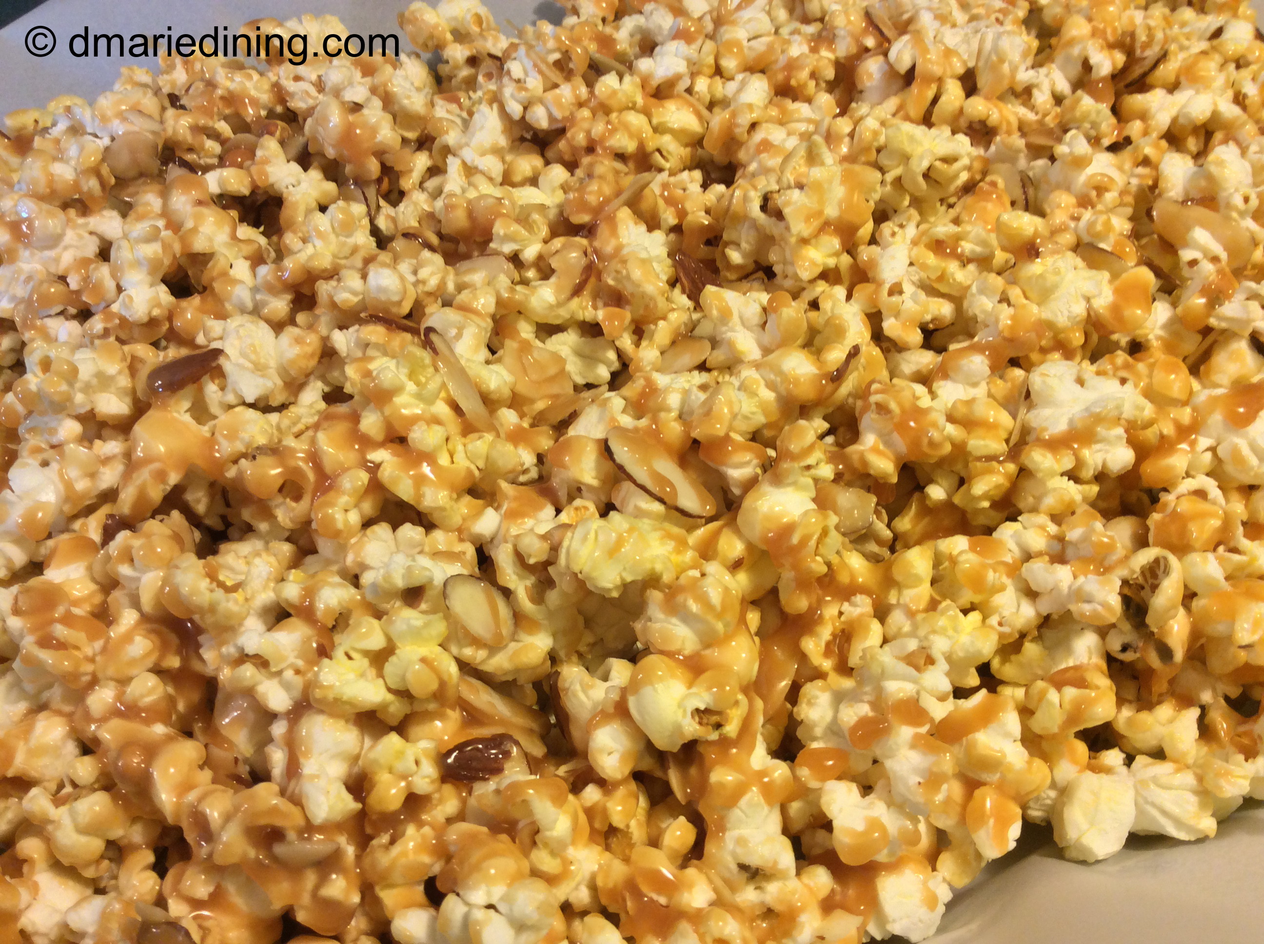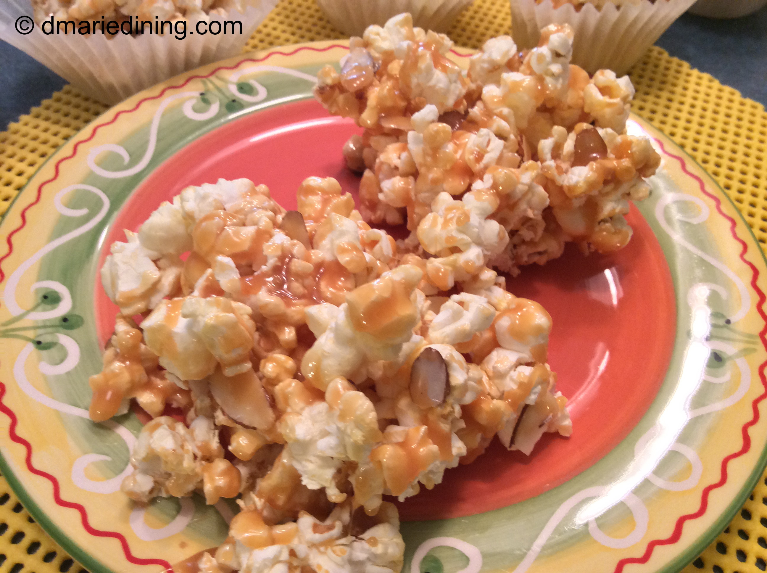 The other day when I was searching through the pantry for some pasta I ran across a few boxes of microwave popcorn. I started wondering what I could do to the microwave popcorn to make it more appealing. The first thing that came to mind was the big bin of caramels I saw at the grocery store the last time I was there. Usually, I would just use caramels to make caramel apples or apple crisp. However, the thought of mixing the caramels with popcorn and sliced almonds seemed like a pretty good idea. Instead of making caramel corn (which is a little too sweet for me), I decided to make Caramel Popcorn Balls which had only a hint of caramel and nuts.