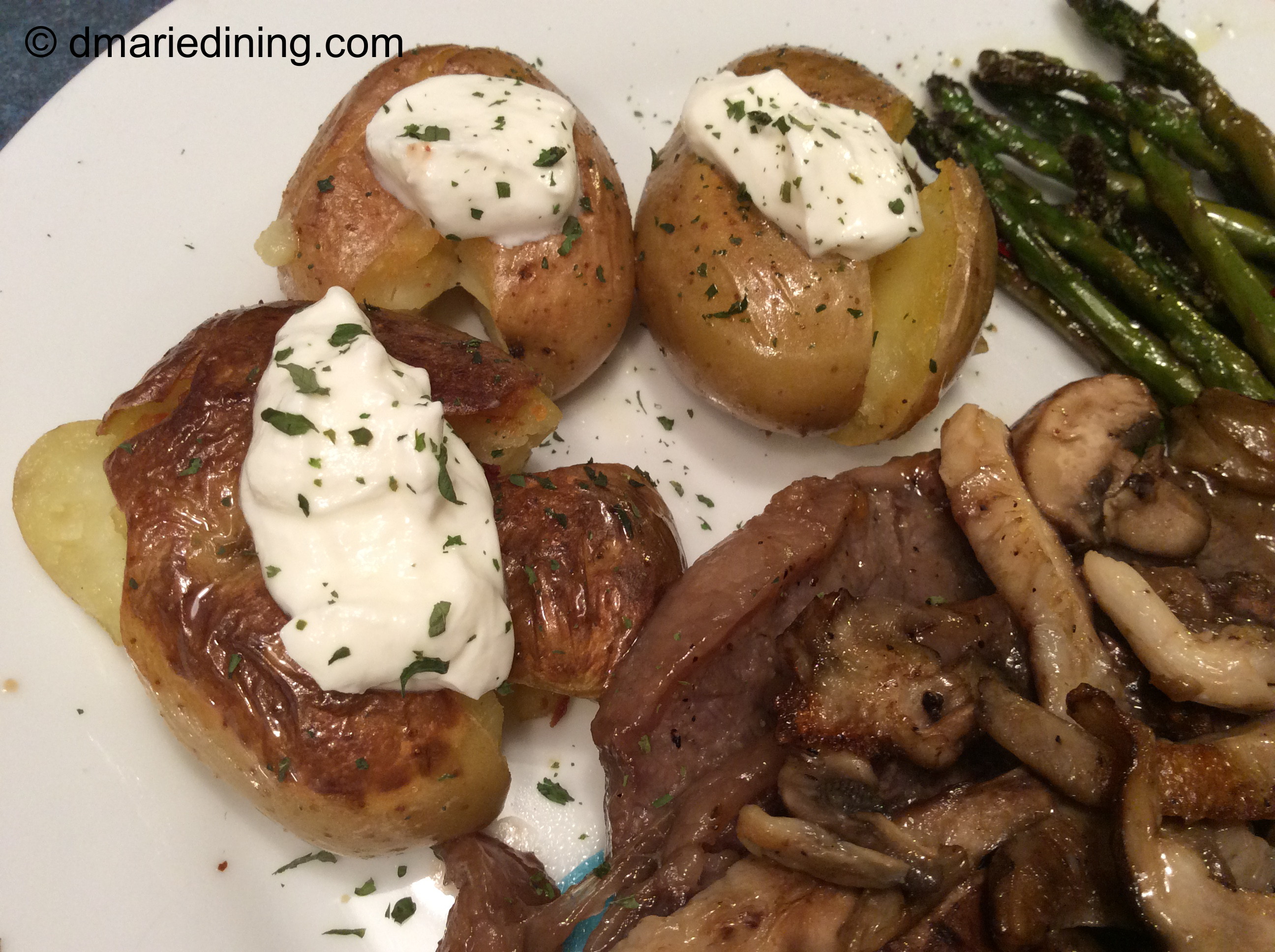 As I said earlier, this is a very simple recipe that will go great with any beef, pork fish or fowl entree. My first adventure into making Potato Squishes was to pair them with steak. Like my daughter often says “shut the front door”! What goes better with steak than potatoes? Nothing! My family was a bunch of happy campers when I served up a nice tender steak, salad and the newly created Potato Squishes.