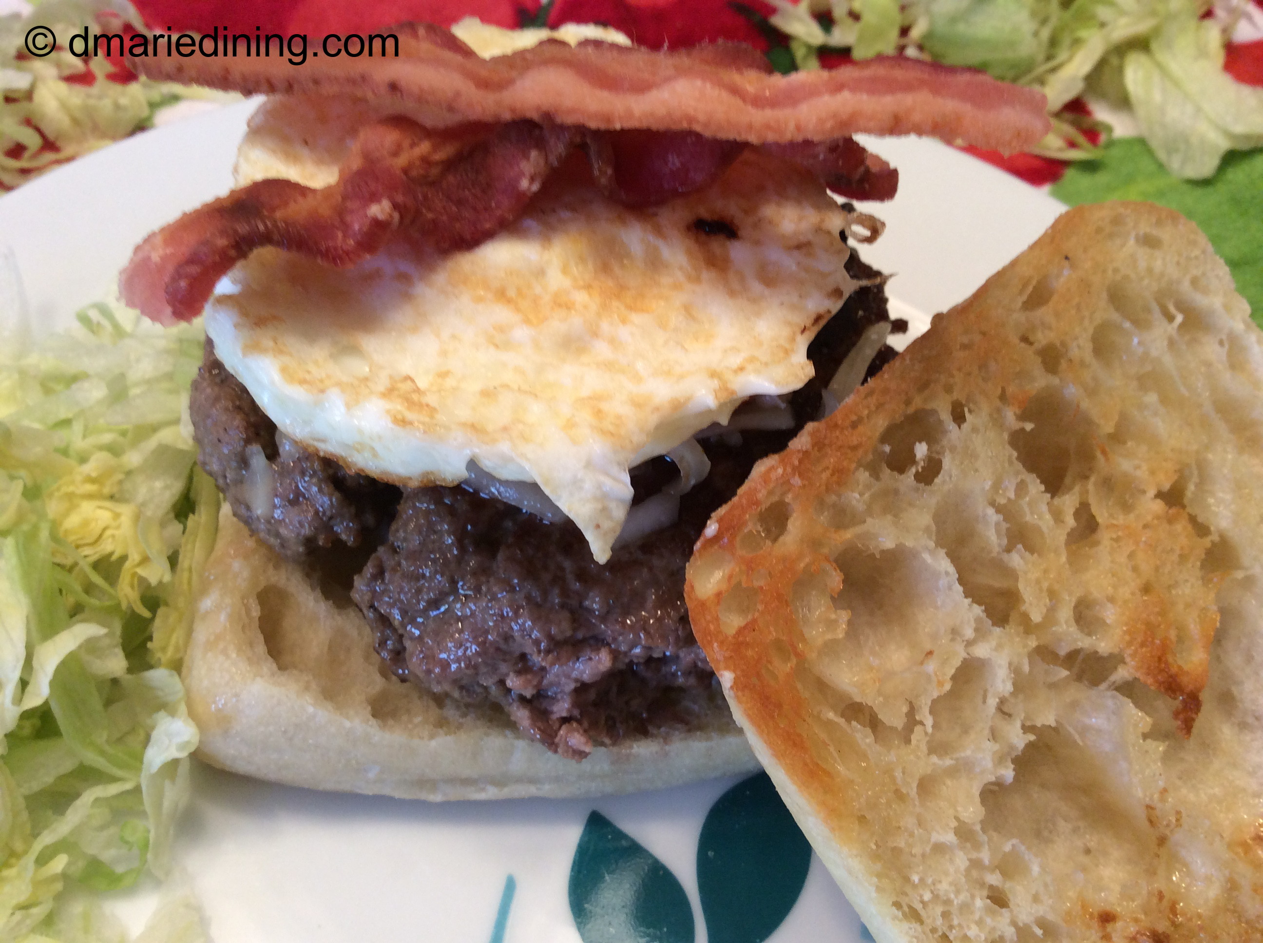 Burgers, I think, are a very individualized food. Everyone likes their burgers prepared in a different way whether it is rare, medium rare or well done. We also like to put different toppings on our burgers. The Sunny Side Burger has basic ingredients but can still be customized to your own tastes like any other recipe you find on dmariedining.com. Try making my version then let me know what you think and if you add a little something to it.