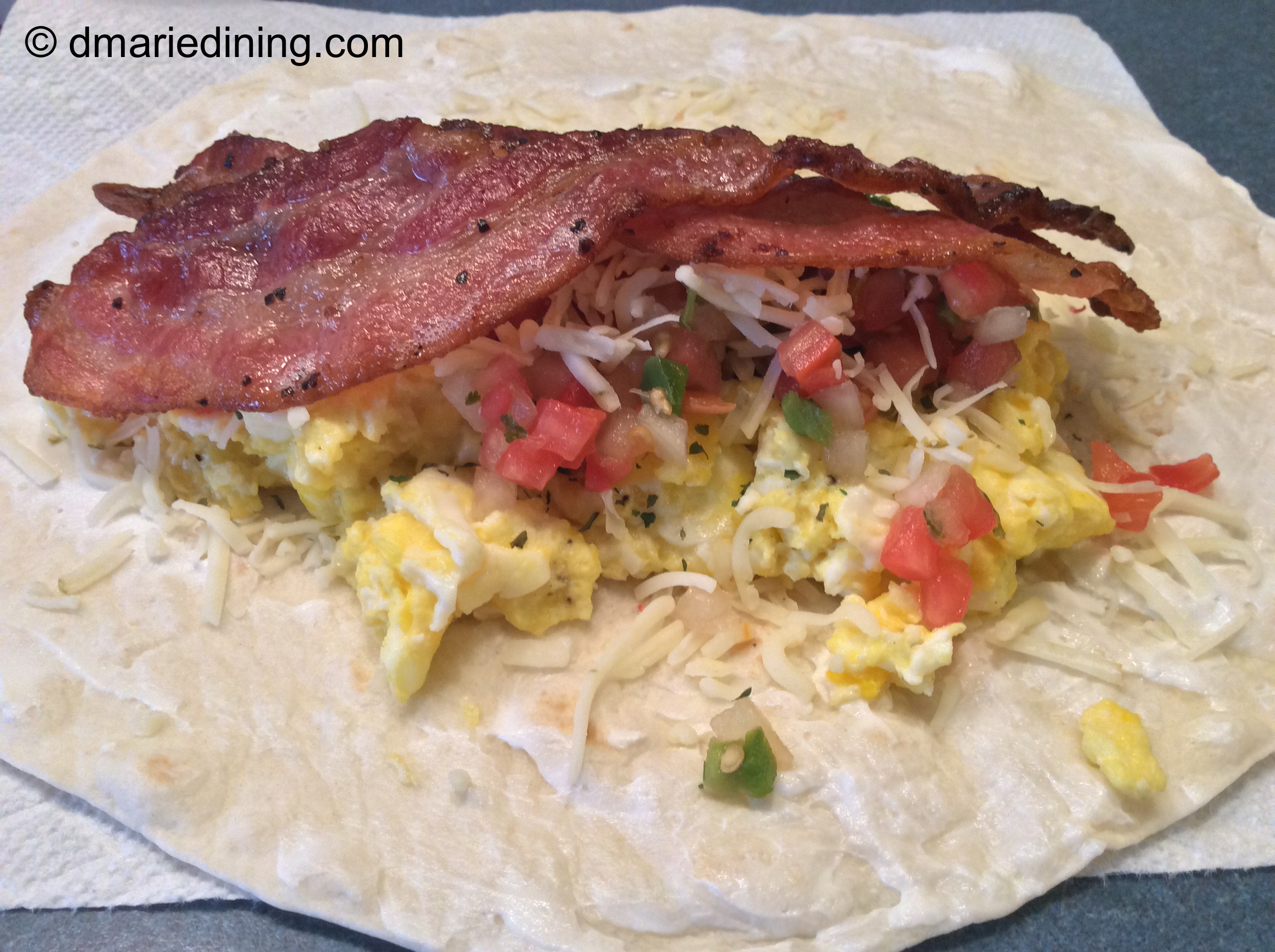Getting back to the veggies in the Breakfast Burrito, I count salsa as a veggie. Salsa is basically nothing but veggies. Tomatoes, onions, peppers. Three vegetables in one scoop of salsa. How great is that? Even my youngest son likes salsa. Although he would also tell you he does not like fresh tomatoes. Cooked? Yes. Fresh? No. Crazy I know but it is all a mind game. There are plenty of things in life folks say they don’t like in one form but love them in another form. For instance, I have a friend that refuses to each raw broccoli with dip. However, she is wild about broccoli salad. Go figure. Hmmm… it must be the bacon. Again, bacon is always good. Yea bacon!