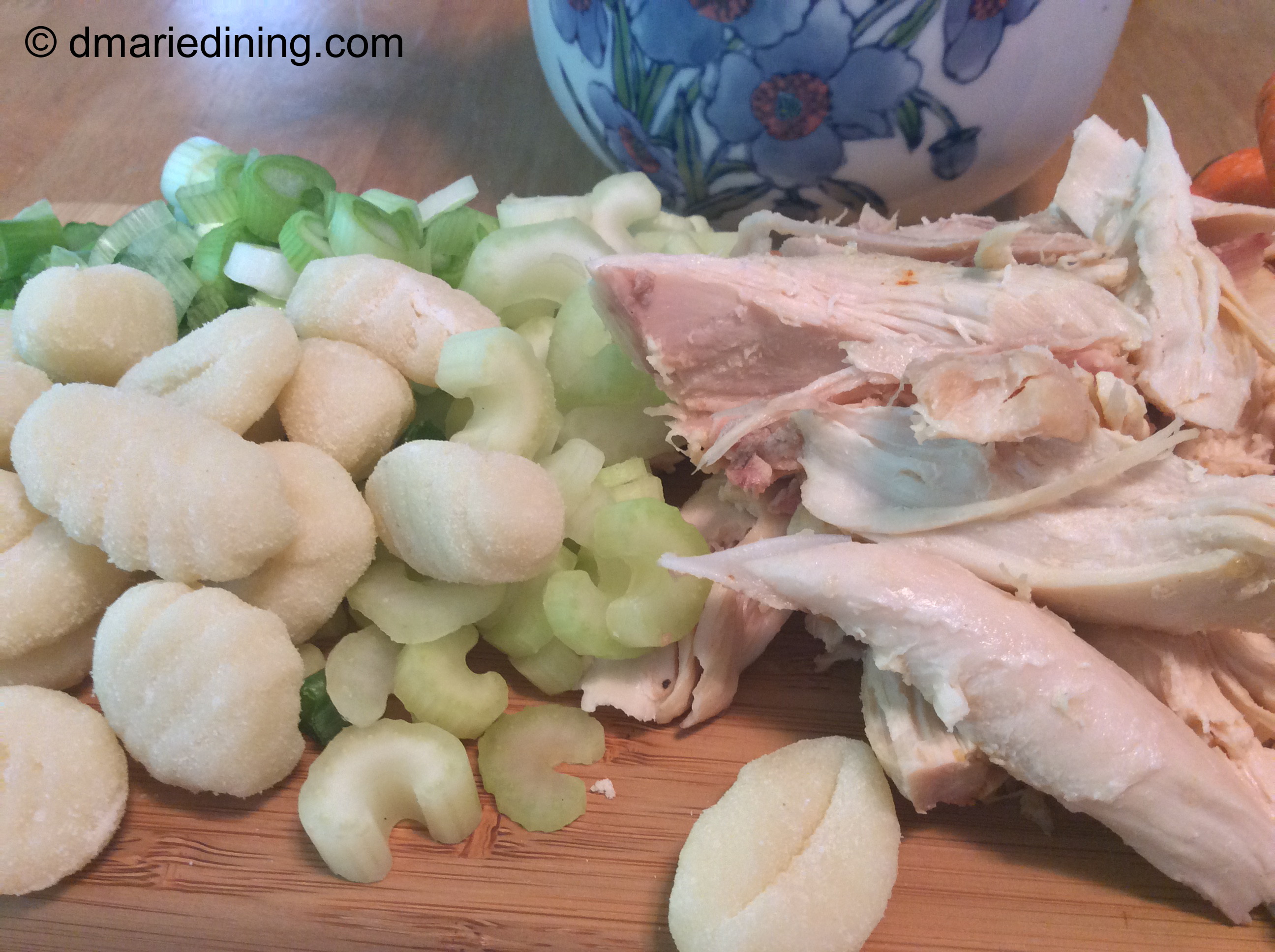 Since my #1 food tester is in college now (yes, hubby is my #2 taste tester) I sometimes have to rely on myself to eat leftovers. Even though I don’t mind eating leftovers for lunch or sometimes breakfast, there are times I have to make them more exciting in order to eat them. That is why I came up with Chicken and Gnocchi Stew. I had a leftover roasted chicken that needed a little tender love and care so it was perfect for a new recipe.
