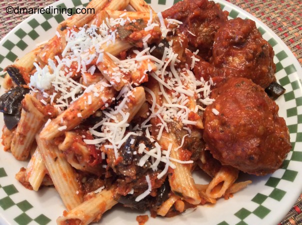 Spicy meatballs on the side allowed me to have a vegetarian dish and the ability to satisfy the carnivore in me and some of my family. The meatballs were also a big hit along with the Penne Pasta and Eggplant. Two for one! Man…. I’m on a roll. Thank you Kashana for your support.
