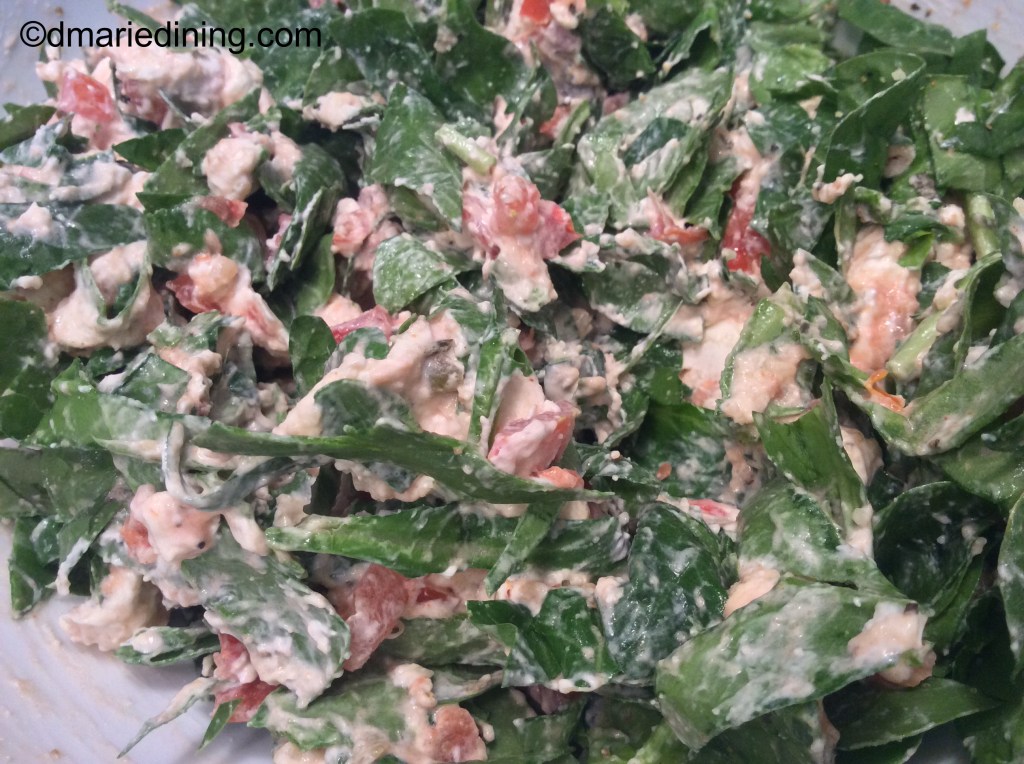Hubby didn’t quite give me the side eye when he saw me mixing everything together. But, he did give me a skeptical look. I told him his idea inspired me to create this dish so he was game to try it as an appetizer during our little happy hour.