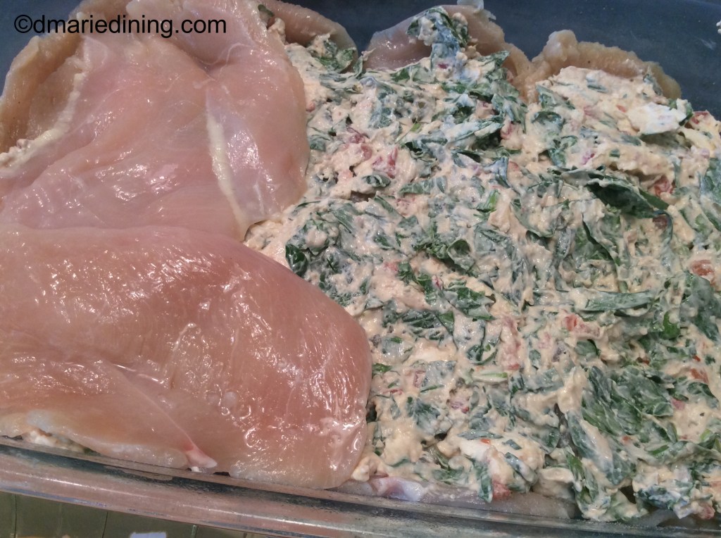 As I changed my eating habits I discovered I liked cooking with chicken thighs more than chicken breasts. Still, the breast held a special place in my heart and I would get a hankering for a nice meaty stuffed chicken breast. Recently, I rediscovered thinly sliced chicken breasts at my grocer. The grocer doesn’t always seem to have them on hand so I forget about looking for them. On my last shopping trip I spied a few packages of thinly sliced breasts and grabbed enough to make dinner and to freeze for another meal.