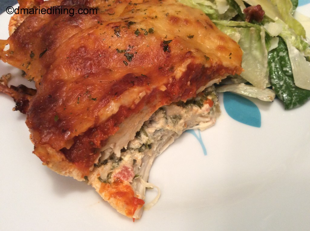 Layered Stuffed Chicken Breasts became a thing in my home when I had a taste for lasagna but did not want to go through the process it takes to make a really good lasagna. I came up with the idea to layer the thinly cut chicken breasts I had in the freezer like I would a lasagna. This recipe fit right in with my new low carbohydrate lifestyle since there was no pasta in sight. I wasn’t sure the fellas in the house would like this dish as much as the pasta layered dishes I have made in the past. However, I was pleasantly surprised that they thought it was a nice change from a heavy lasagna. Just so they had the illusion of having pasta with the Layered Stuffed Chicken Breasts I made some spaghetti squash to go with dinner. In the end, I was able to service a low carb meal everyone enjoyed and I could stick to my new lifestyle of eating.