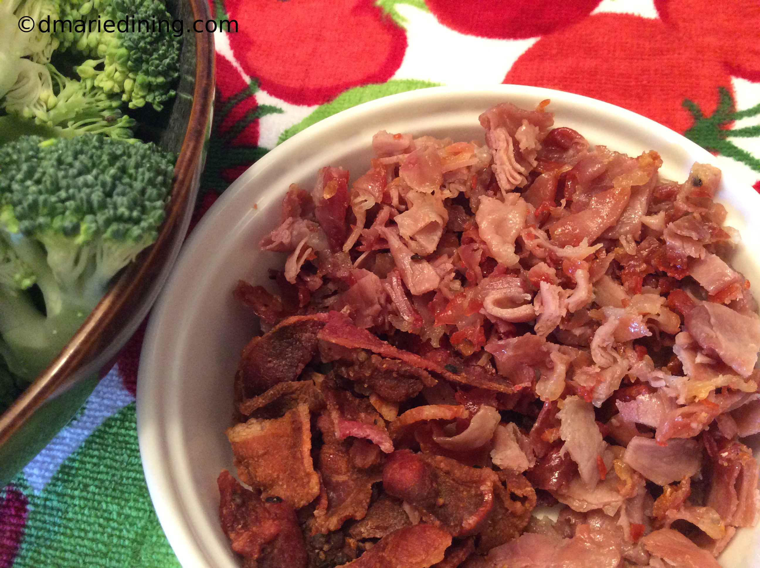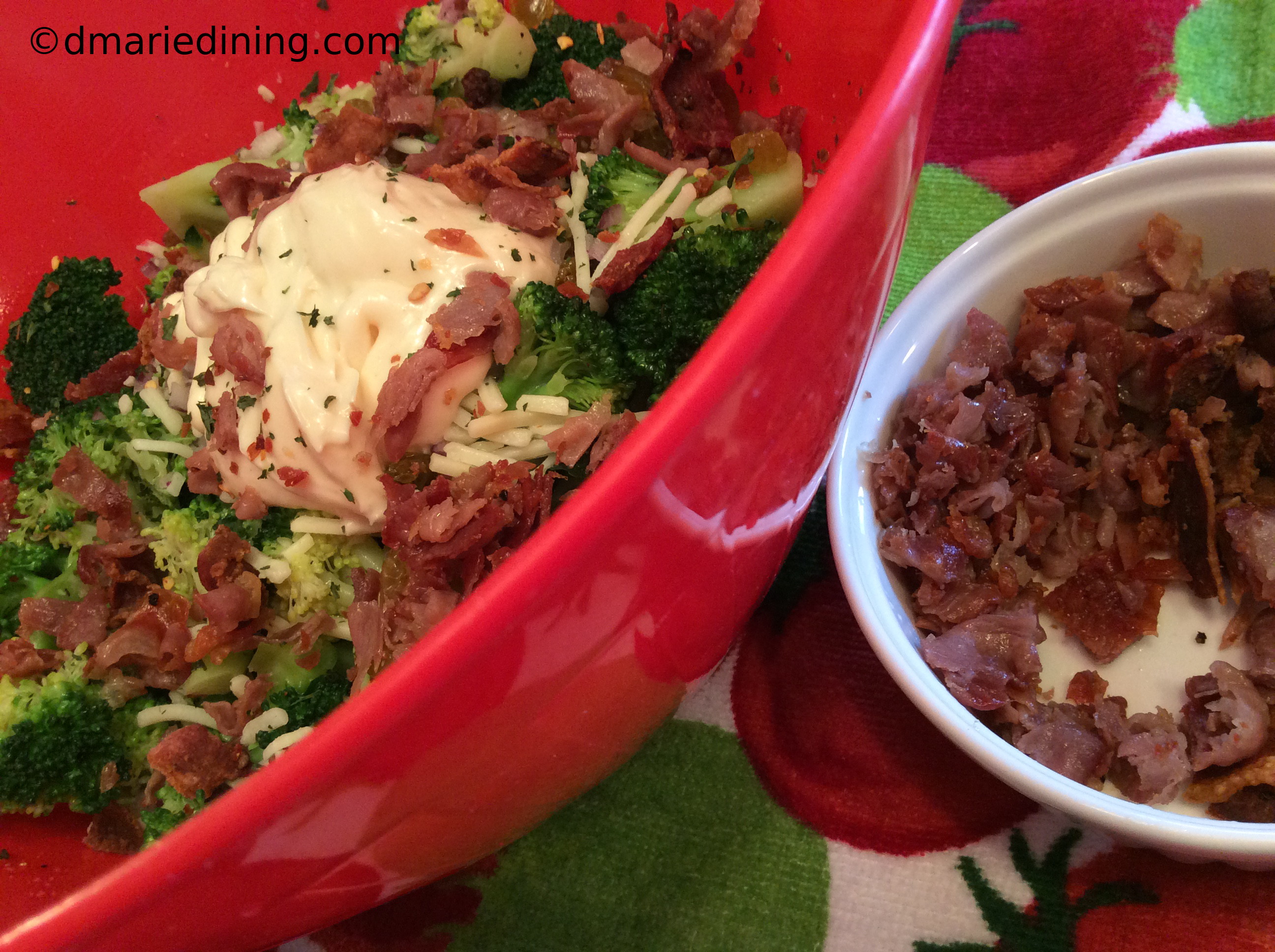 Season one package of cooked diced white meat chicken with a little salt, onion powder and pepper. Set aside. Blanche 1 package of broccoli florets in salted water for about 3 minutes. Remove from water and place in a bowl of ice cold water to stop the cooking process. Drain and sprinkle broccoli with a little salt. Place chicken and broccoli in the bottom of the pie crust then pour egg and cheese mixture over the filling. Bake according to the basic recipe.