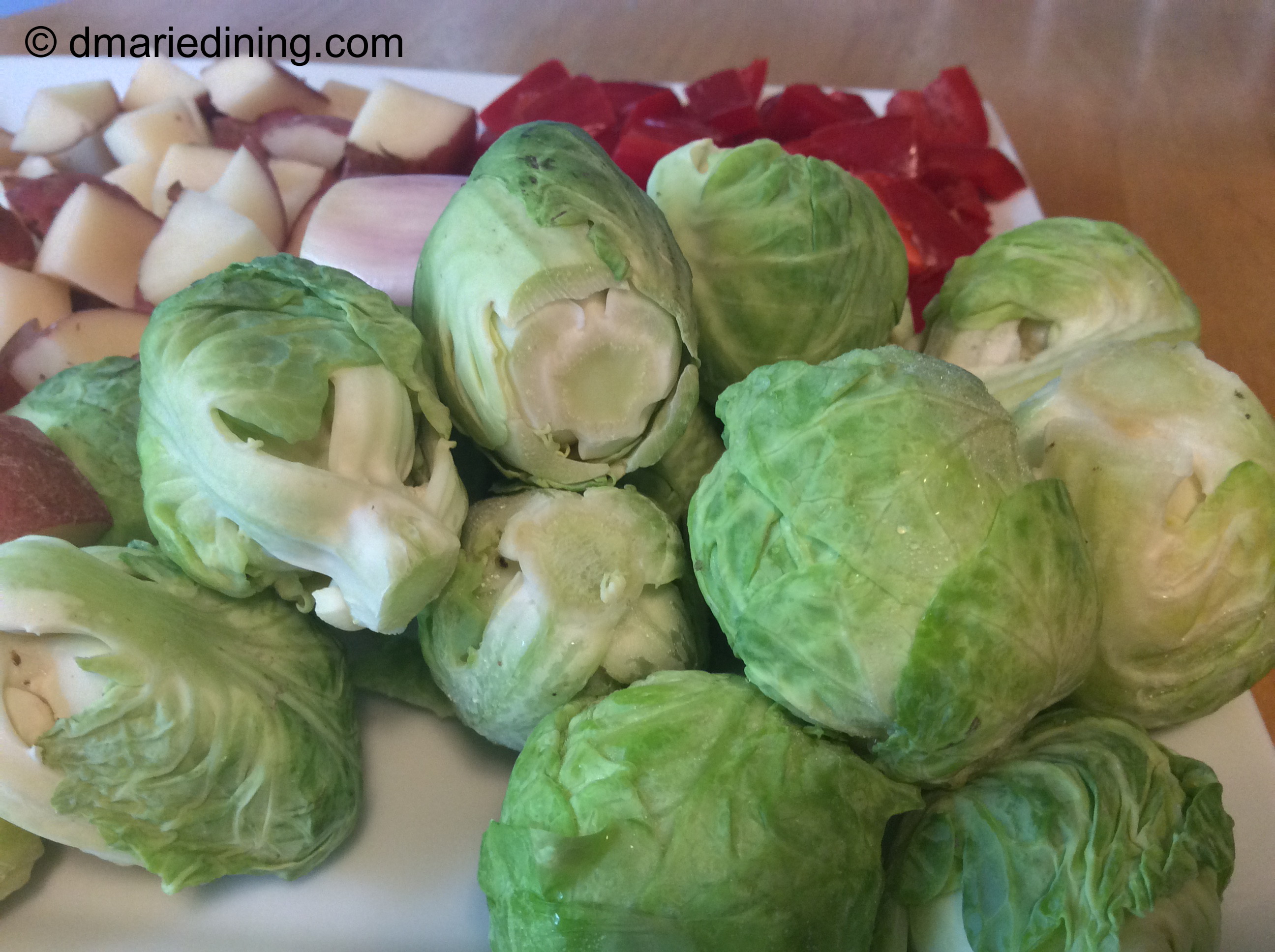 I came up with my brussel sprout hash recipe the same way I come up with quite a few of my creations. I needed to do something with the fresh brussel sprouts I threw into my shopping cart earlier in the week hoping I would be inspired by their presence in my frig. This time I actually was inspired by the brussel sprouts. I couldn’t bear to just boil them or simply roast them. But, I did want to bake them along with onions, peppers and potatoes and turn them into a hash. This recipe was created with just me in mind because neither my hubby nor my youngest son likes brussel sprouts. Me? I love them. I just don’t prepare them often because like I said in the beginning they can be a little stinky.