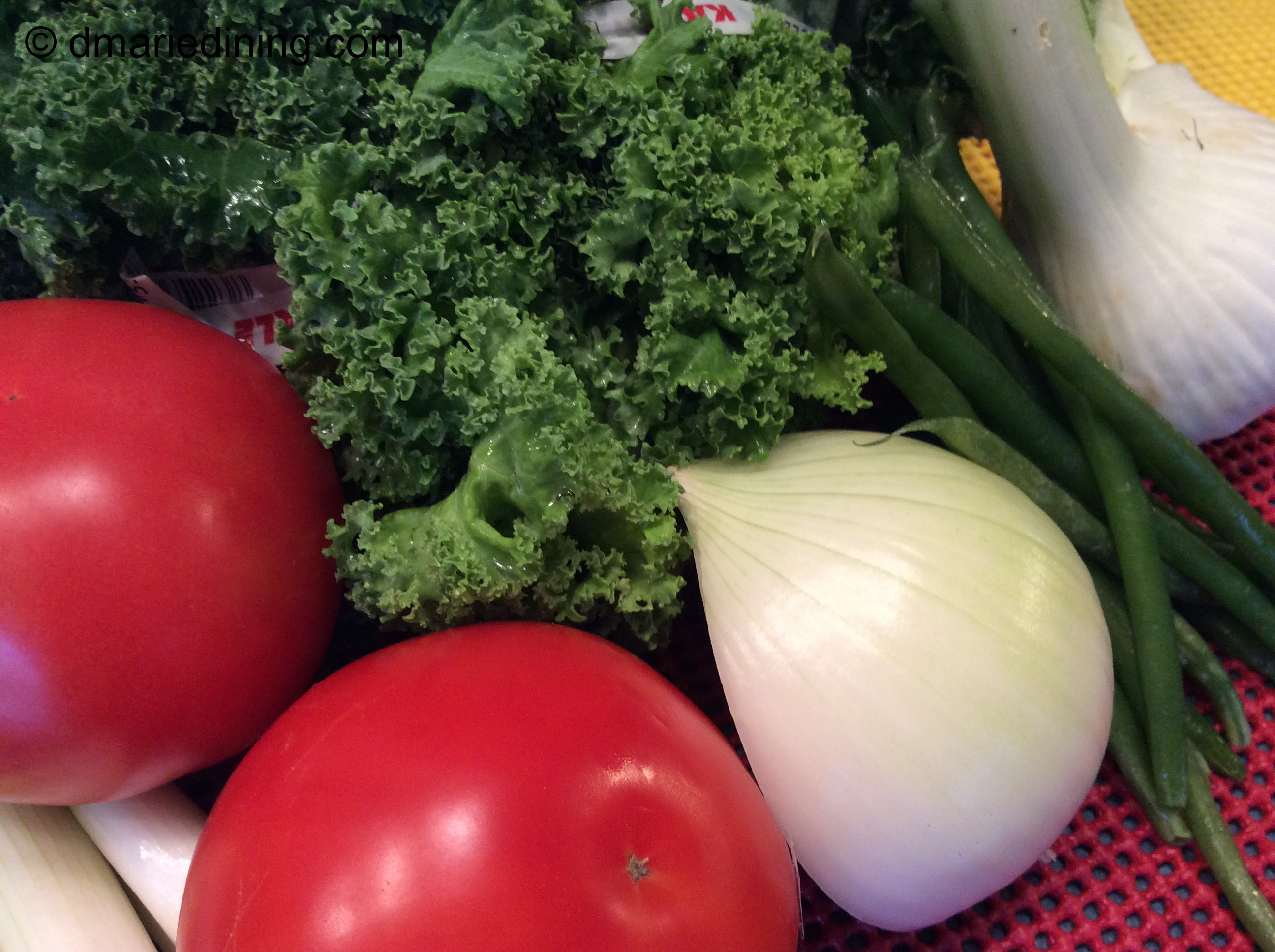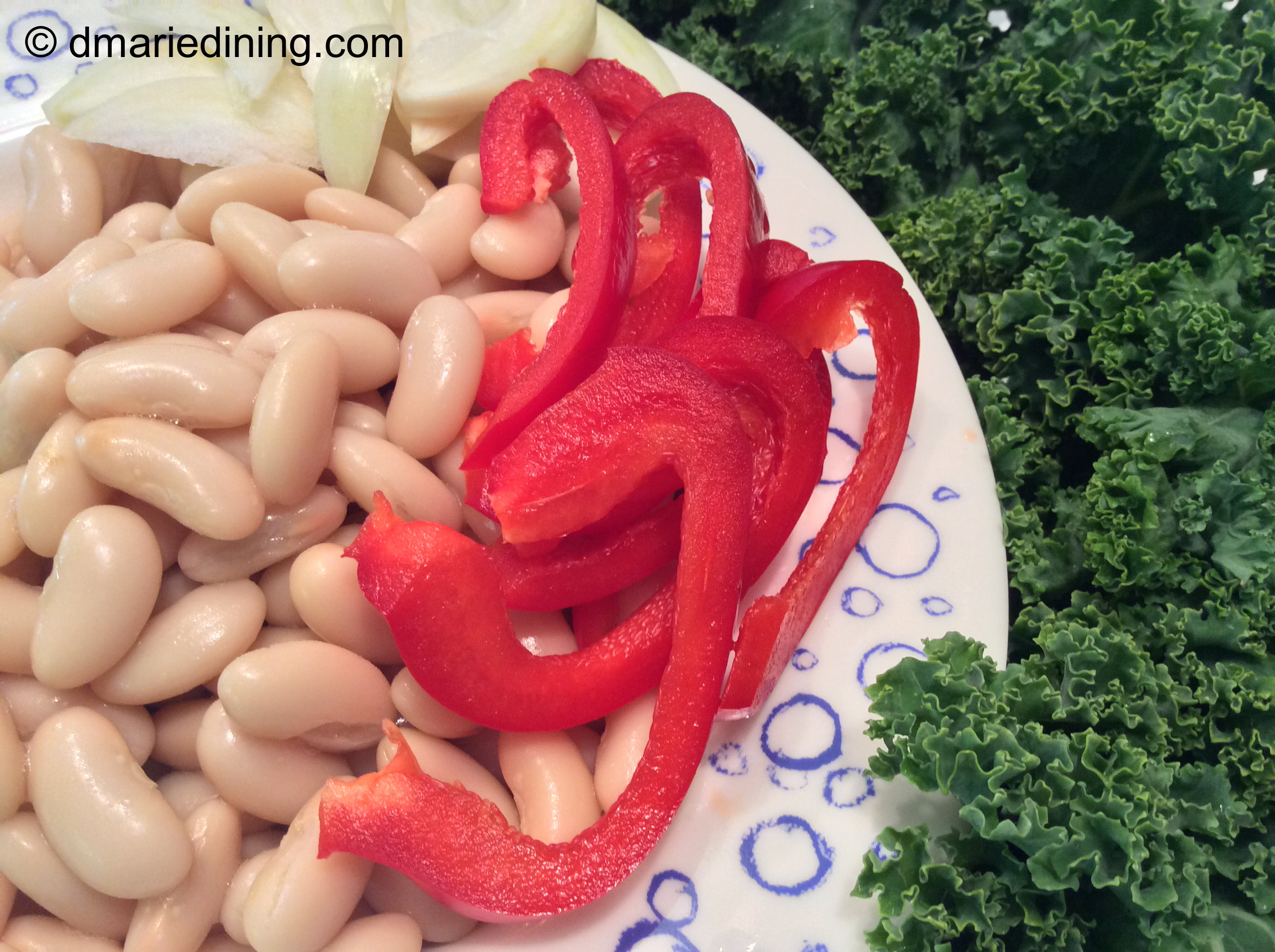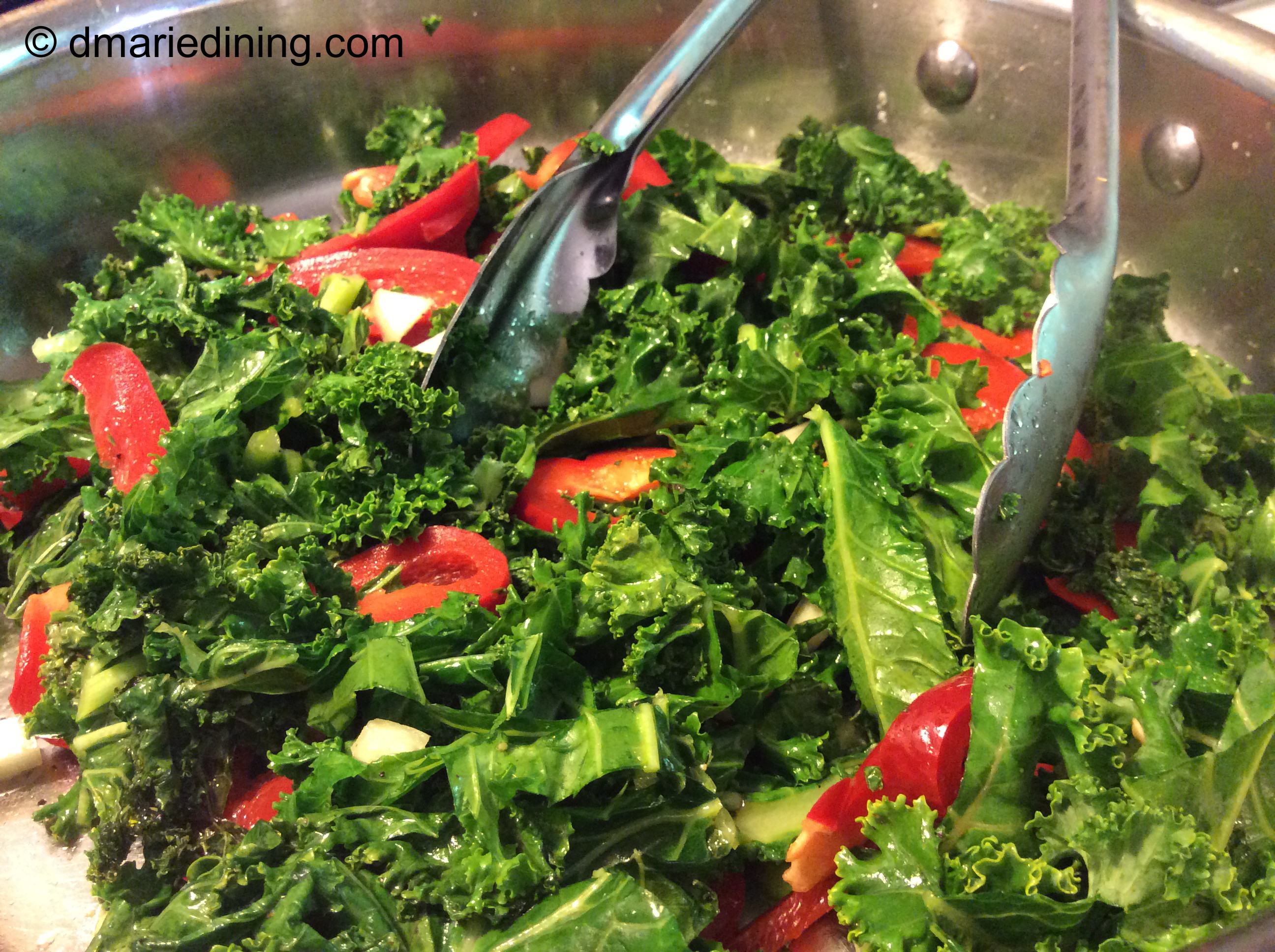 When Baby Girl thought of this recipe she decided to step it up a little by using two types of kale – red kale and curly green kale. I don’t remember ever seeing red kale in the grocery store or maybe I did see it but did not know it was kale. Anyway, the red kale was beautiful and had a sweeter and more delicate flavor than the curly green kale. The combination of the two types of kale created a nice balance between the slightly bitter and sweet flavors. Adding sweet potatoes only elevated the dish and made it blog worthy.