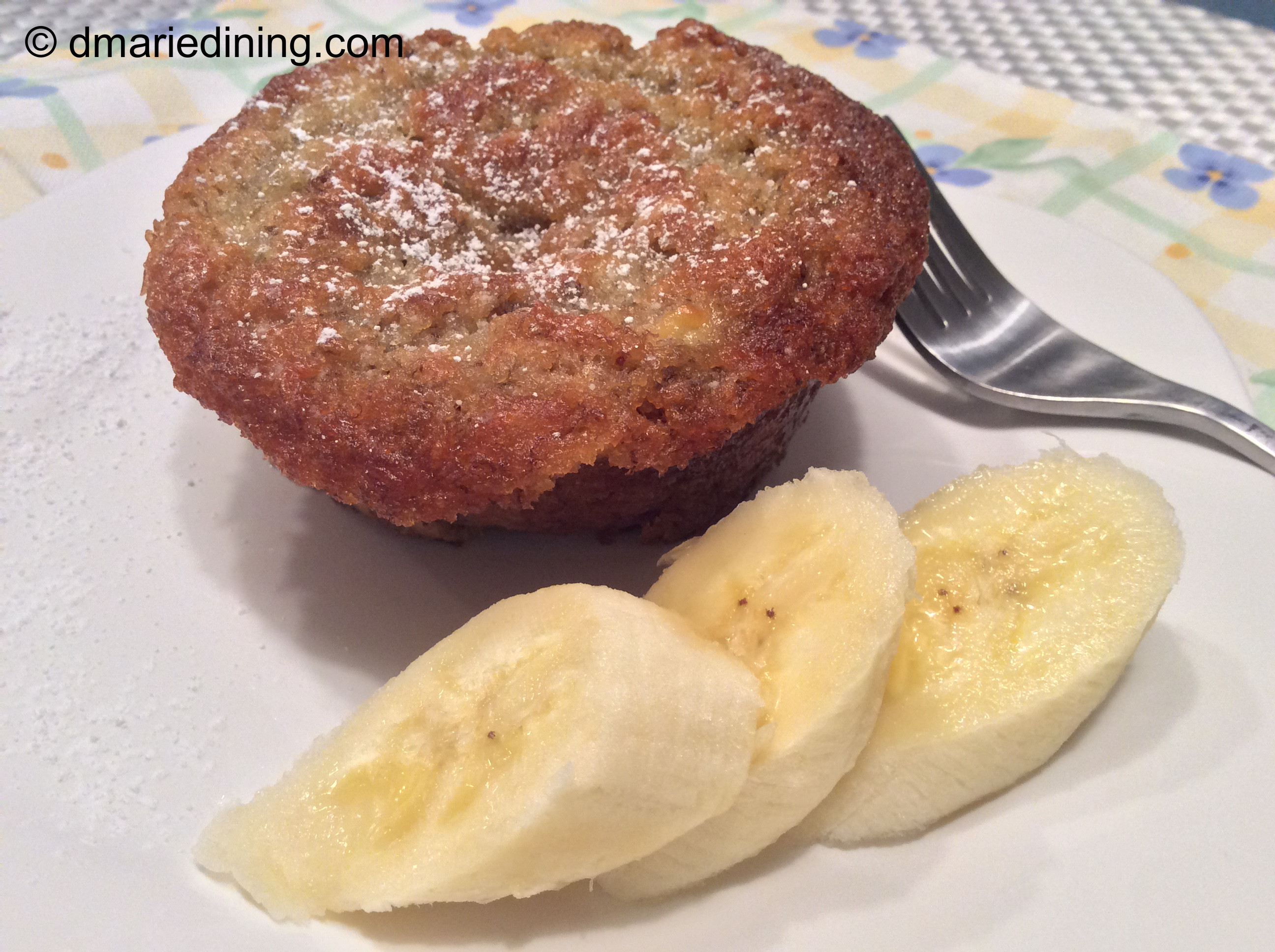 In a large bowl gently mash the bananas leaving small chunks. Add remaining ingredients until well blended. Fill baking cups ½ way then top with crumble. Bake for 15 – 20 minutes depending on your oven. Test with a toothpick to see if the center is set.