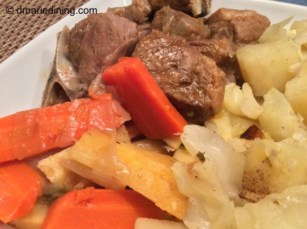 Remove lamb neck bones from pot and place in a large casserole dish. Top with carrot slices and cover. Cook for 20 – 25 minutes until the carrots are tender. Serve with steamed cabbage or sauteed sweet potatoes.