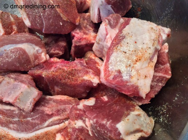 While oil is heating up take the chicken out of the refrigerator and let it come to room temperature. Add flour, ½ tsp ground black pepper, seasoned salt, onion powder and Adobo to a large bowl and combine until well mixed.
